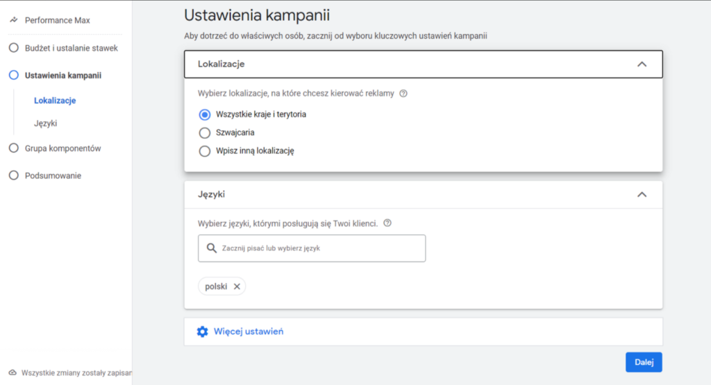 Dzięki temu nie tworzymy sztucznego podziału na języki. Zwiększamy tym też zasięga naszej reklamy. A Google po okresie nauki zrozumie, że klienci używają różnych języków i przeglądarek, i będzie wybierał tych, którzy z największym prawdopodobnieństwem zrealizują konwersje